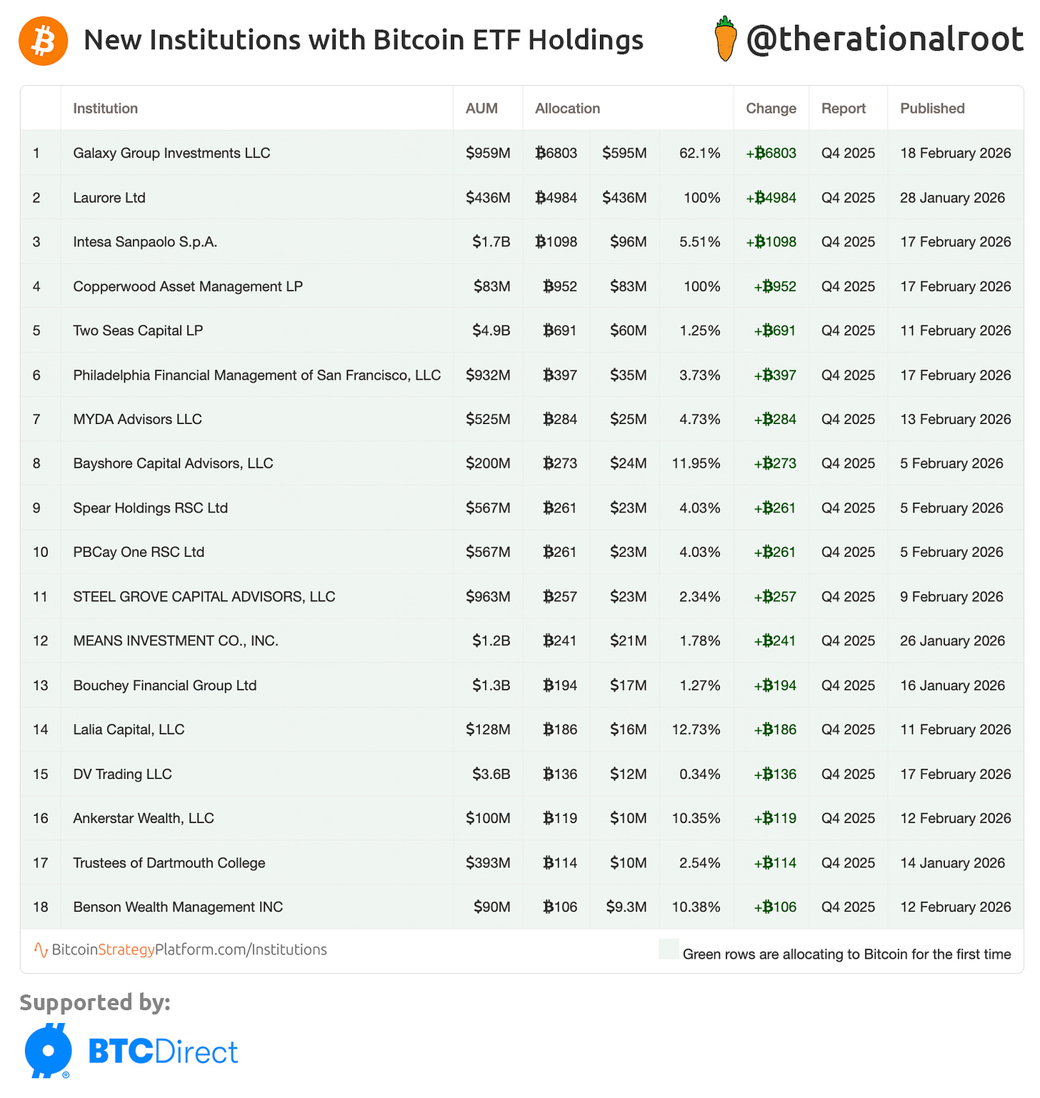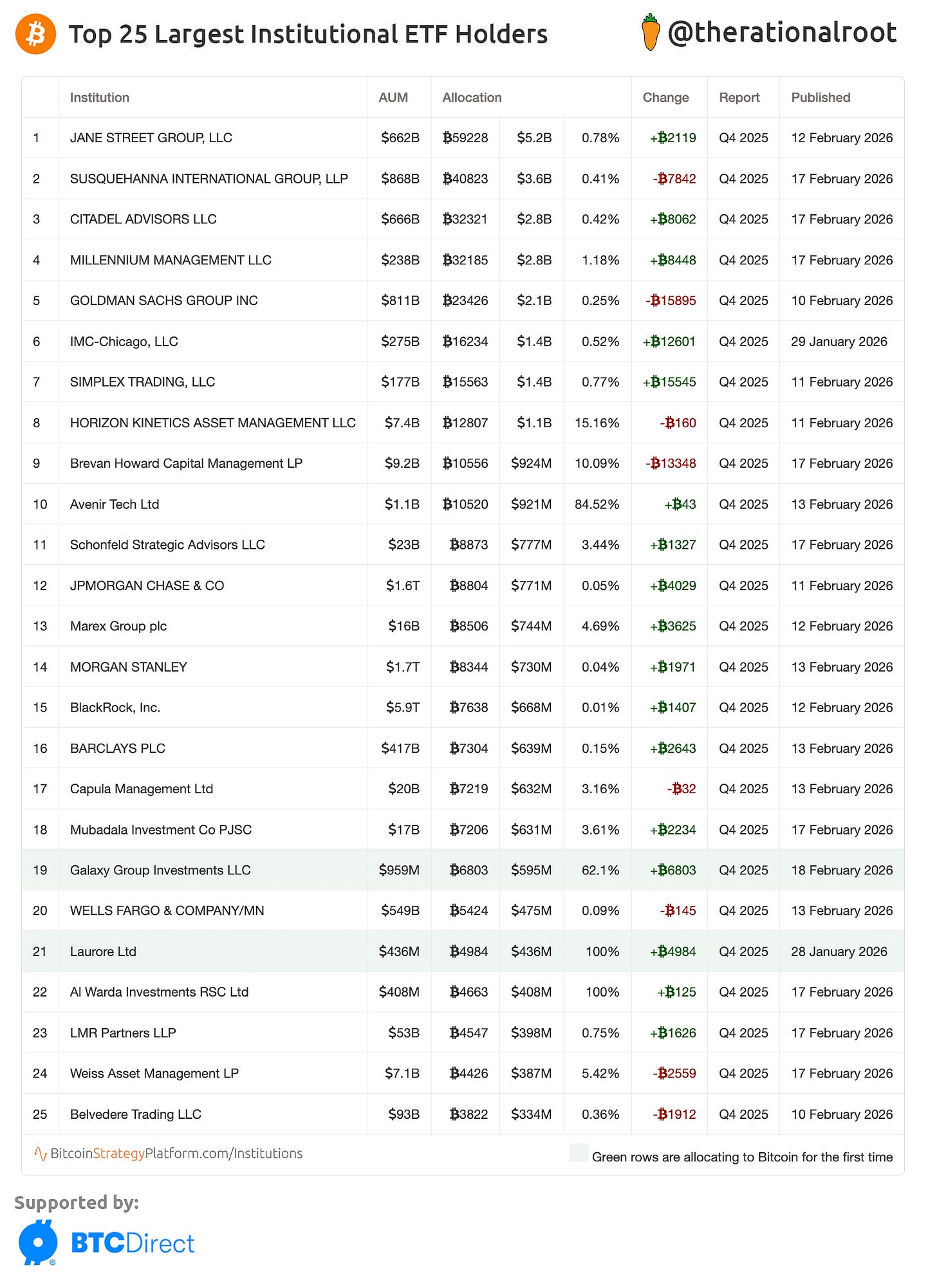 👉 Key insight: 17 out of 25 increased their positions in Q4, including major banks and the state-owned sovereign wealth fund Mubadala of Abu Dhabi.